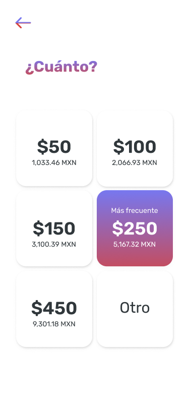 Las transacciones se procesan exclusivamente en dólares estadounidenses. Esto significa que la cotización y las transferencias de fondos solo se realizarán en esta moneda. Tu destinatario recibirá los fondos en la moneda solicitada.